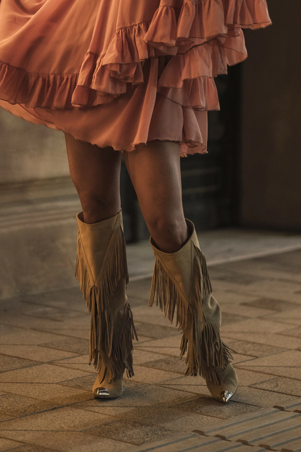 Botas de gamuza con recortes con flecos y de metal.